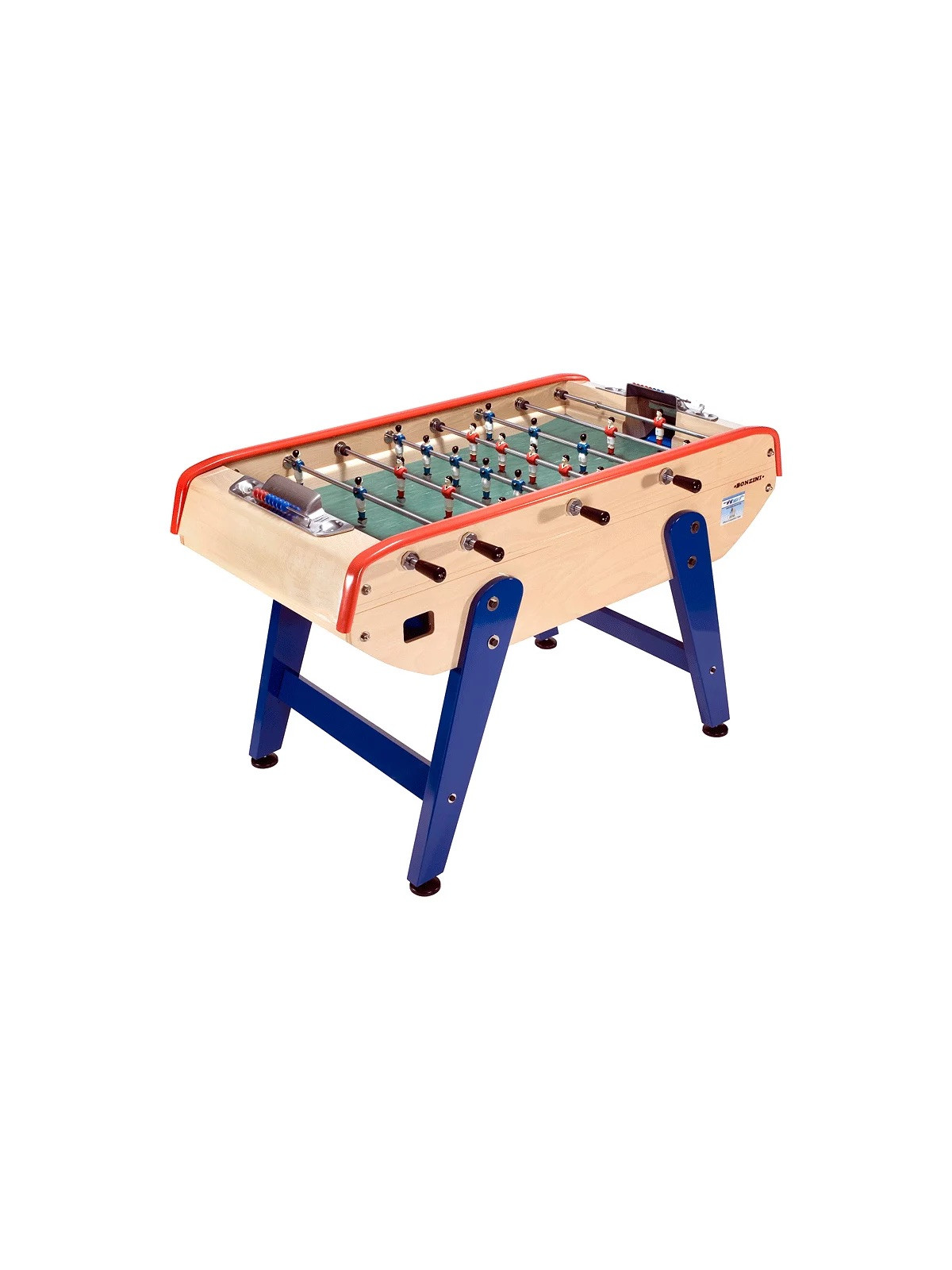 Joueurs: aluminium, fixés sur les barres par vis haute résistance, décorés main, peinture au four (Bleu et rouge) avec pieds brossés, compteurs de point compétitions