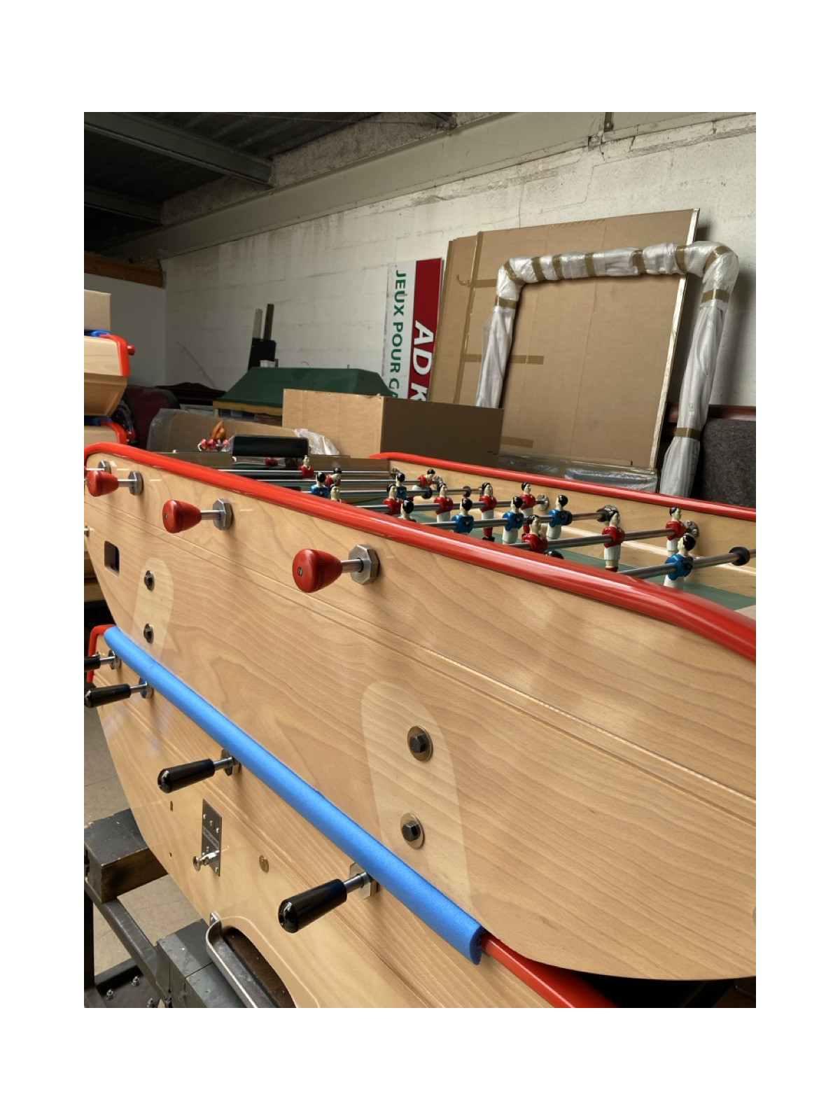 Joueurs: aluminium, fixés sur les barres par vis haute résistance, décorés main, peinture au four (Bleu et rouge), compteur de point assortis