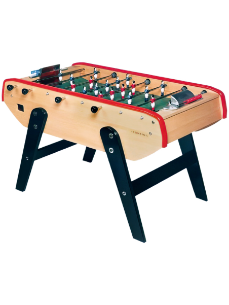 Le baby-foot Stadium constitue une version allégée du B90, avec un poids réduit d’environ 20 kg. Dépourvu de monnayeur, il est proposé dans une unique finition : un meuble en bois mélaminé ton hêtre naturel, associé à des pieds en hêtre massif laqués noirs, et aux combinaisons de couleurs emblématiques des modèles B60 et B90 qui reflètent l’identité Bonzini.