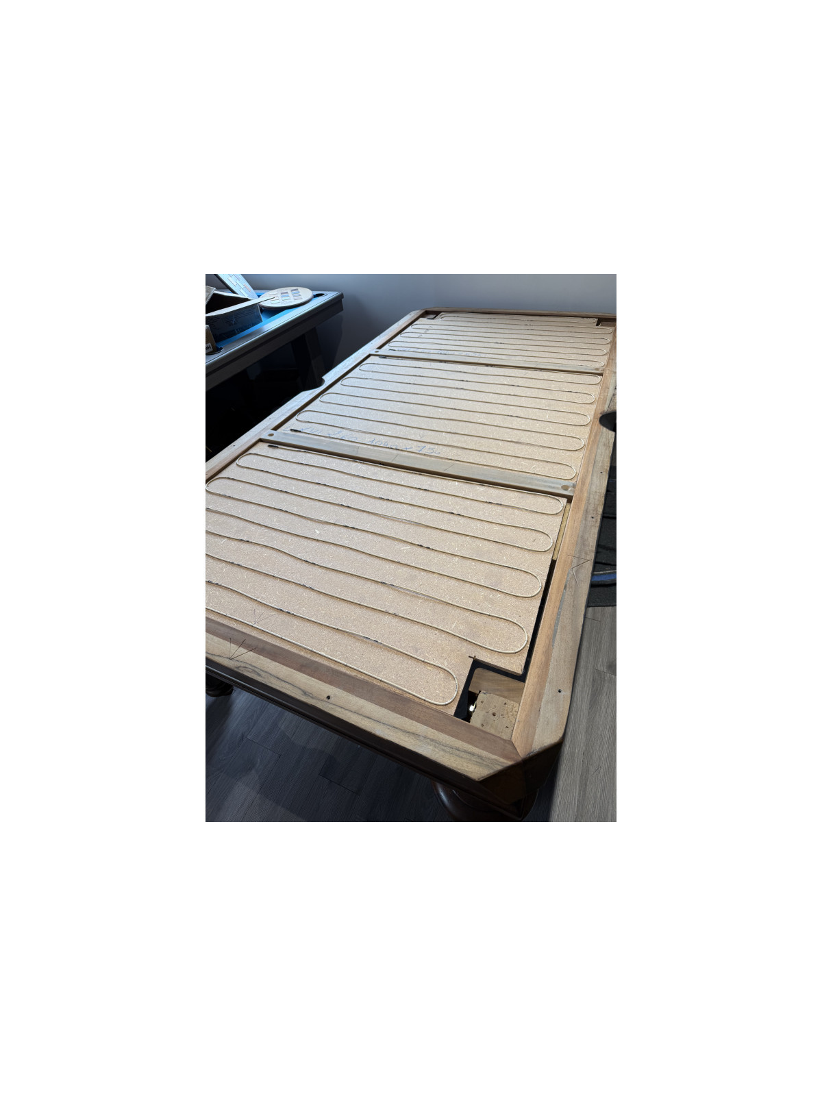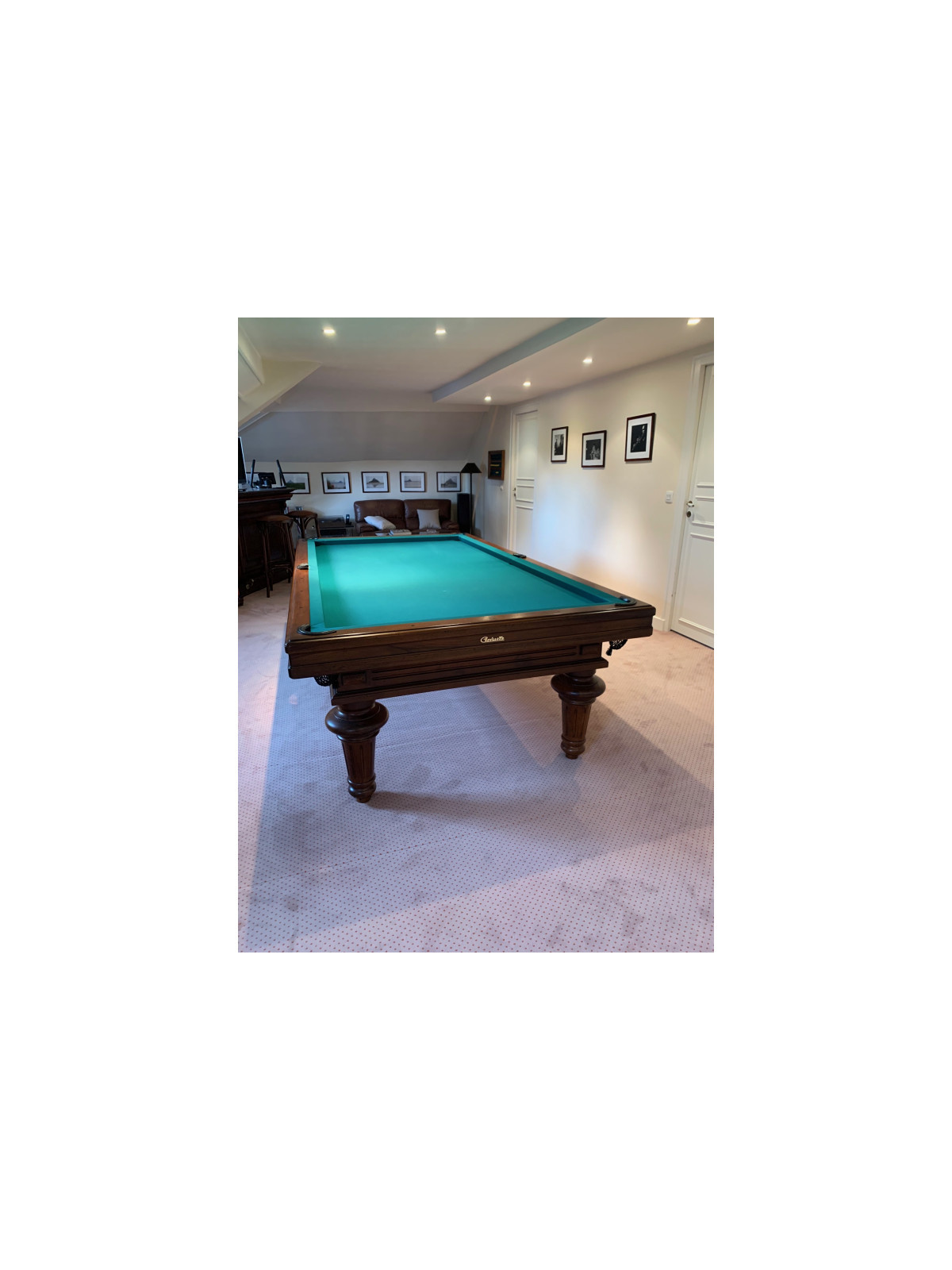 Billard d’occasion en très bon état général, soigneusement entretenu, prêt à être installé et utilisé immédiatement après pose du drap neuf.