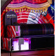 La porte d'entrée, la boîte de titre et l'étagère d'affichage intérieure sont ornées de superbes placages d'acajou, triés individuellement et parfaitement assortis à chaque armoire. L'armoire juke-box est dotée d'un placage sapele, teinté d'une couleur profonde, riche et brillante qui complète la finition luxueuse de la façade.