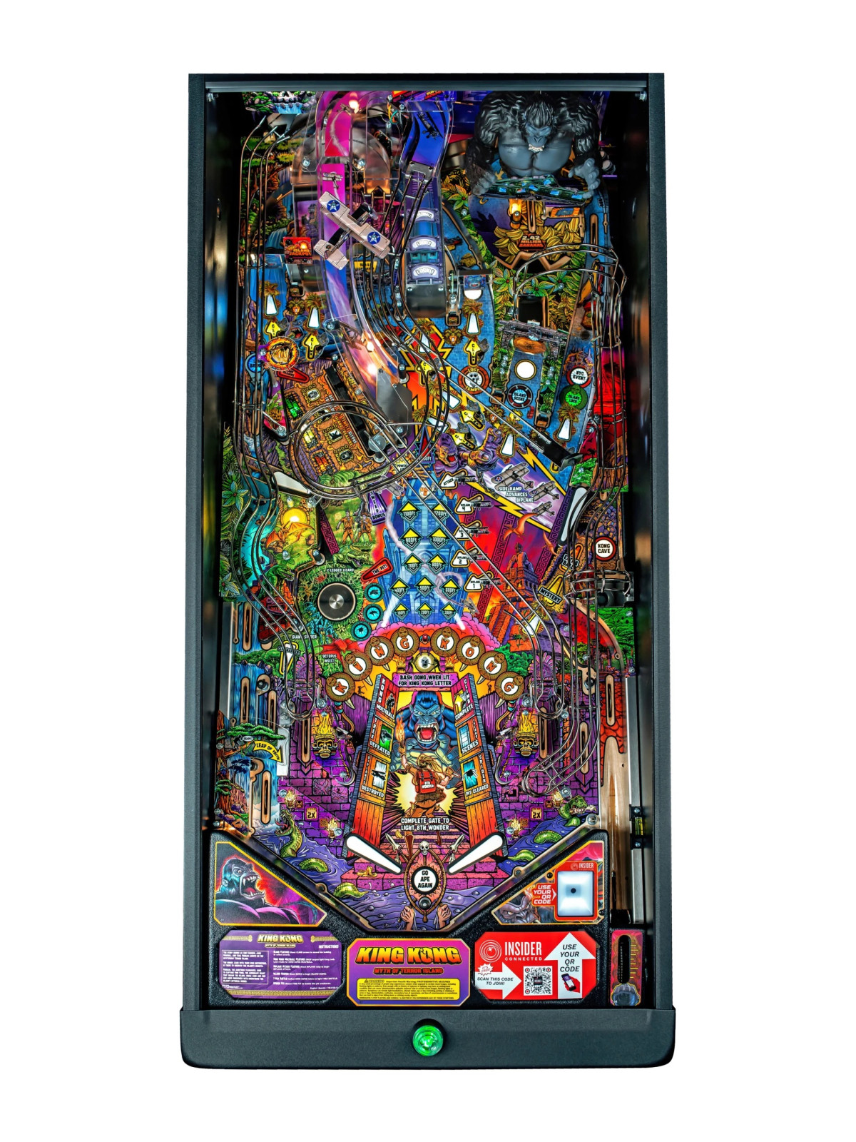 Le King Kong: Myth of Terror Island de Stern Pinball est un flipper de dernière génération conçu pour offrir une expérience de jeu immersive, dynamique et techniquement avancée. Inspiré de l’univers mythique de King Kong, il plonge le joueur au cœur d’une aventure spectaculaire mêlant jungle primitive, temples anciens et paysages urbains dévastés. Grâce à une conception mécanique soignée et à un design visuel hautement qualitatif, ce modèle s’adresse aussi bien aux collectionneurs qu’aux exploitants professionnels recherchant un flipper moderne et performant.