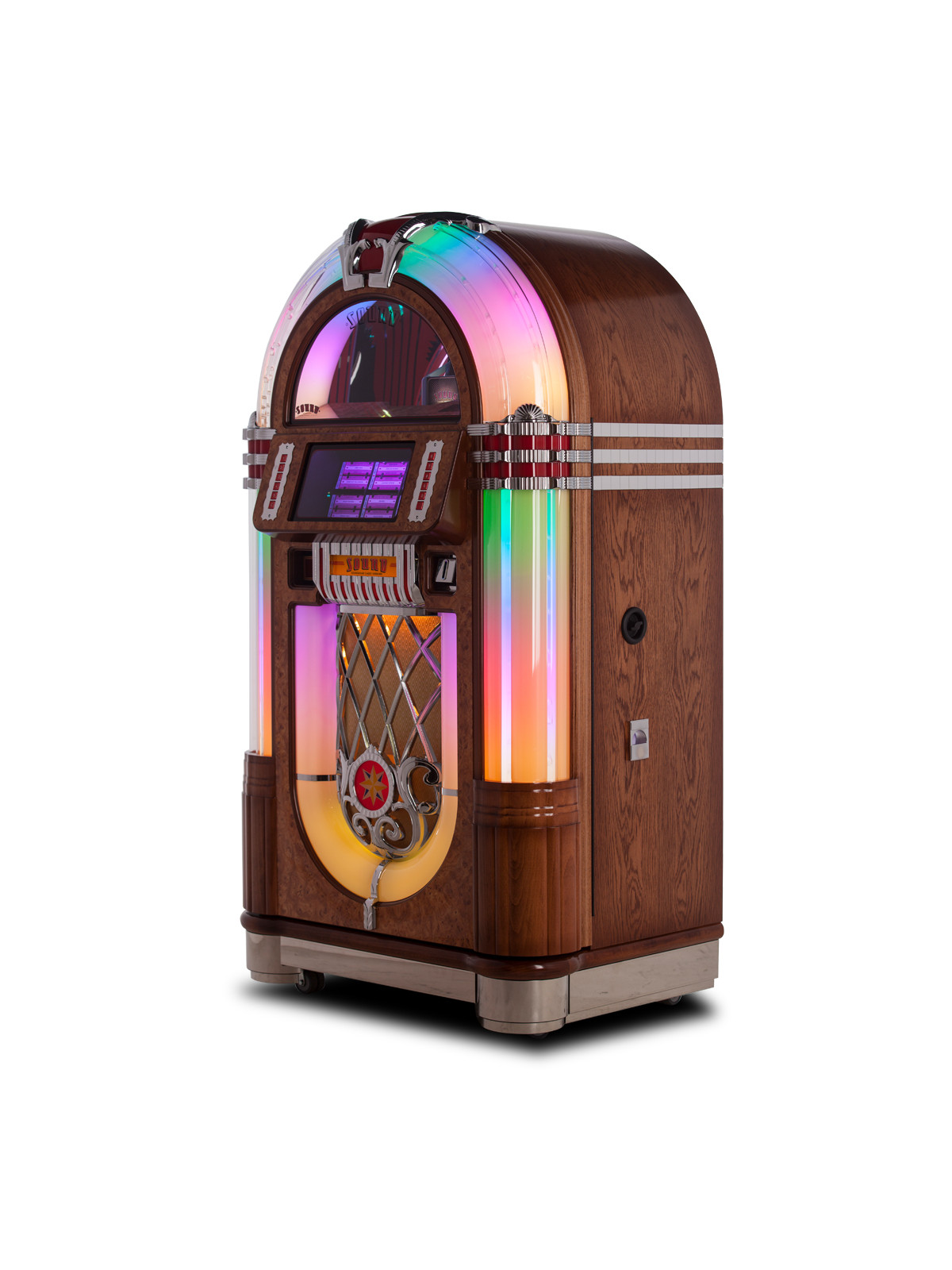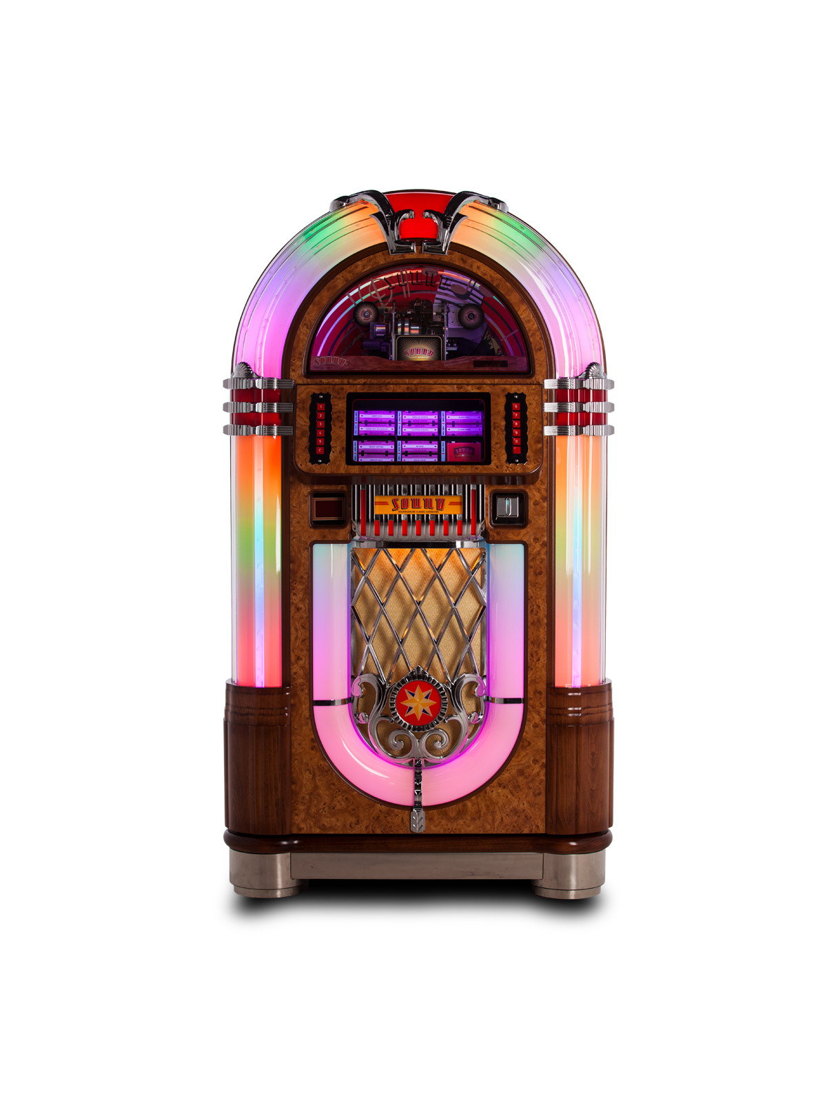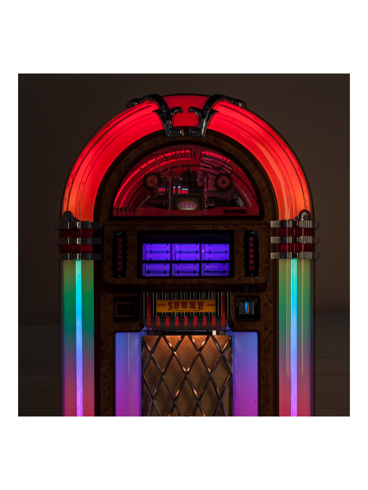 Le SL45 est spécialement conçu pour lire les disques vinyles 45 tours avec précision et fidélité. Son mécanisme stable garantit une rotation régulière, minimisant les vibrations pour préserver la qualité sonore. Le jukebox est idéal pour redécouvrir les singles vinyles, les classiques du rock, de la soul ou du jazz, avec un rendu riche et fidèle.