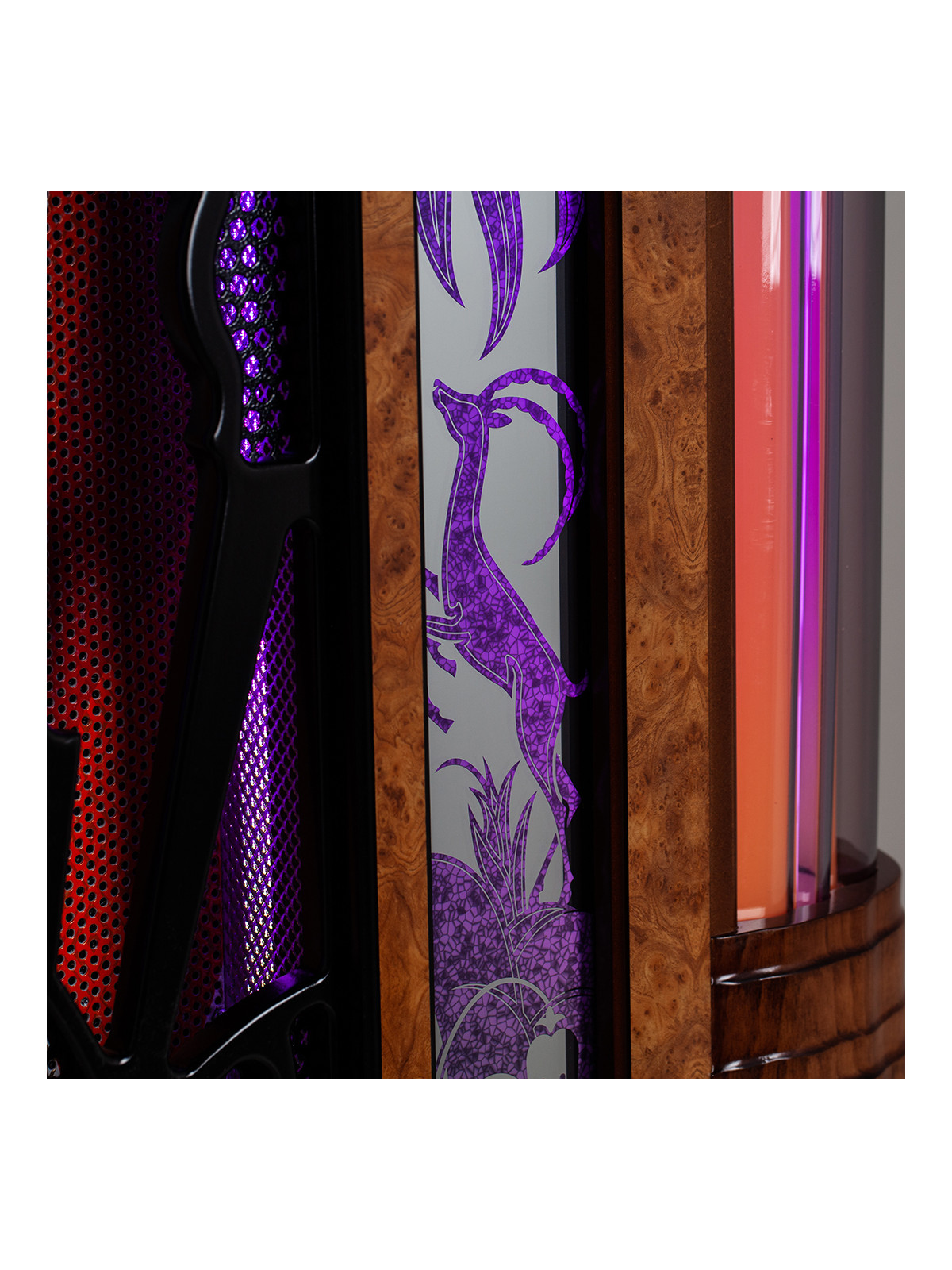 Avec son esthétique élégante, son éclairage LED personnalisable et la qualité premium de sa construction en bois massif, Le Jukebox Gazelle Vinyle devient une véritable pièce maîtresse dans tout intérieur : salon sophistiqué, bar, hôtel, salle de jeux ou espace lounge.