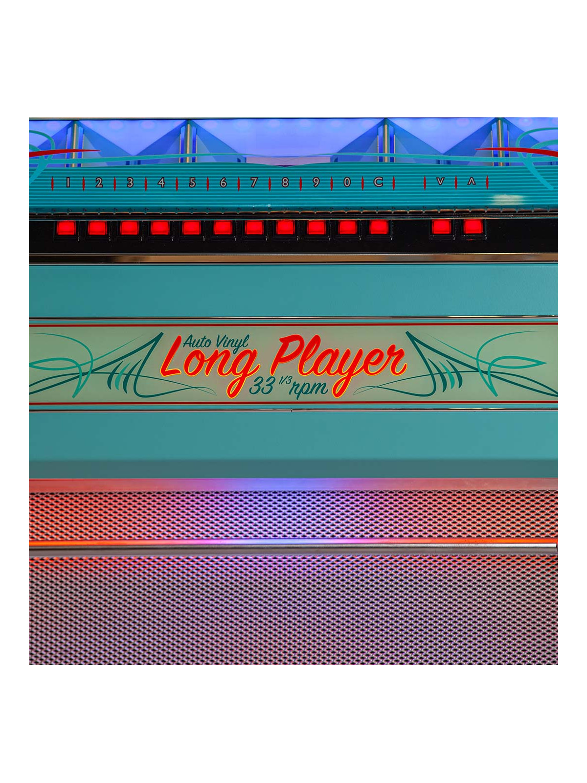 Le jukebox permet de sélectionner facilement les albums et les faces des vinyles, de créer des playlists et de profiter de différents modes de lecture, offrant une expérience d’écoute fluide et conviviale. La connectivité Bluetooth intégrée apporte une flexibilité supplémentaire, permettant de diffuser de la musique depuis un smartphone ou un appareil compatible, sans renoncer au charme du vinyle.
