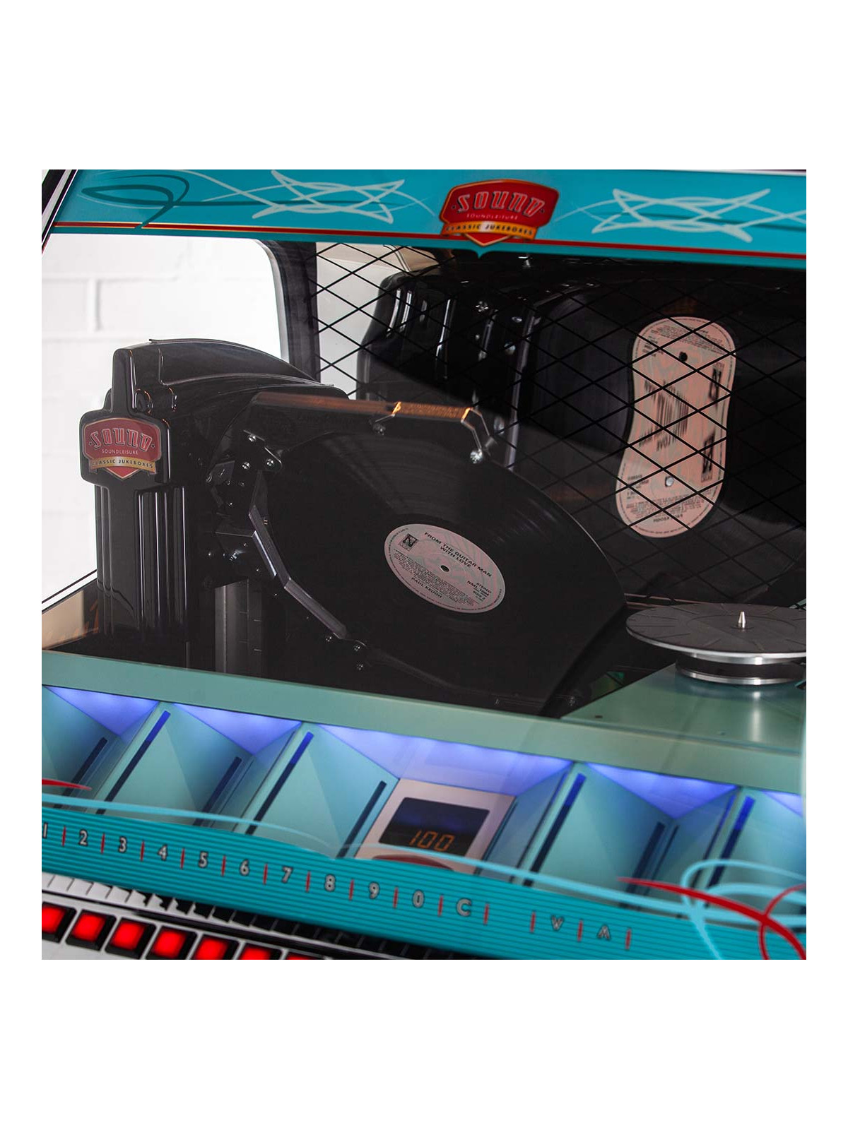 Doté d’un système audio performant avec amplificateur dédié Sound Leisure et haut-parleurs de haute qualité, le Jukebox Anniversary Rocket LP délivre un son puissant, chaleureux et équilibré, fidèle à l’esprit analogique. À la fois objet décoratif, équipement audio haut de gamme et hommage à l’histoire du jukebox, ce modèle anniversaire s’adresse aux passionnés de musique, aux collectionneurs et aux amateurs de design recherchant une pièce unique et emblématique.