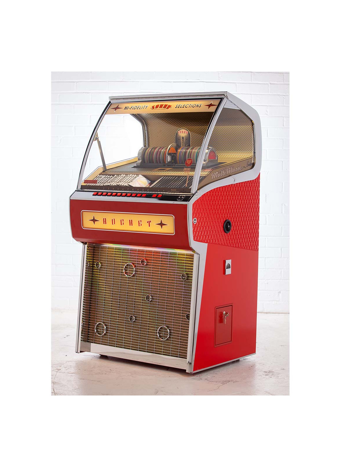 Équipé d’un système audio performant avec amplificateur dédié Sound Leisure et haut-parleurs de haute qualité, le Jukebox Rocket CD délivre un son puissant, clair et équilibré. À la fois équipement audio premium et objet de design emblématique, il s’adresse aux passionnés de musique, aux amateurs de style rétro et aux professionnels souhaitant créer une ambiance musicale forte et authentique.