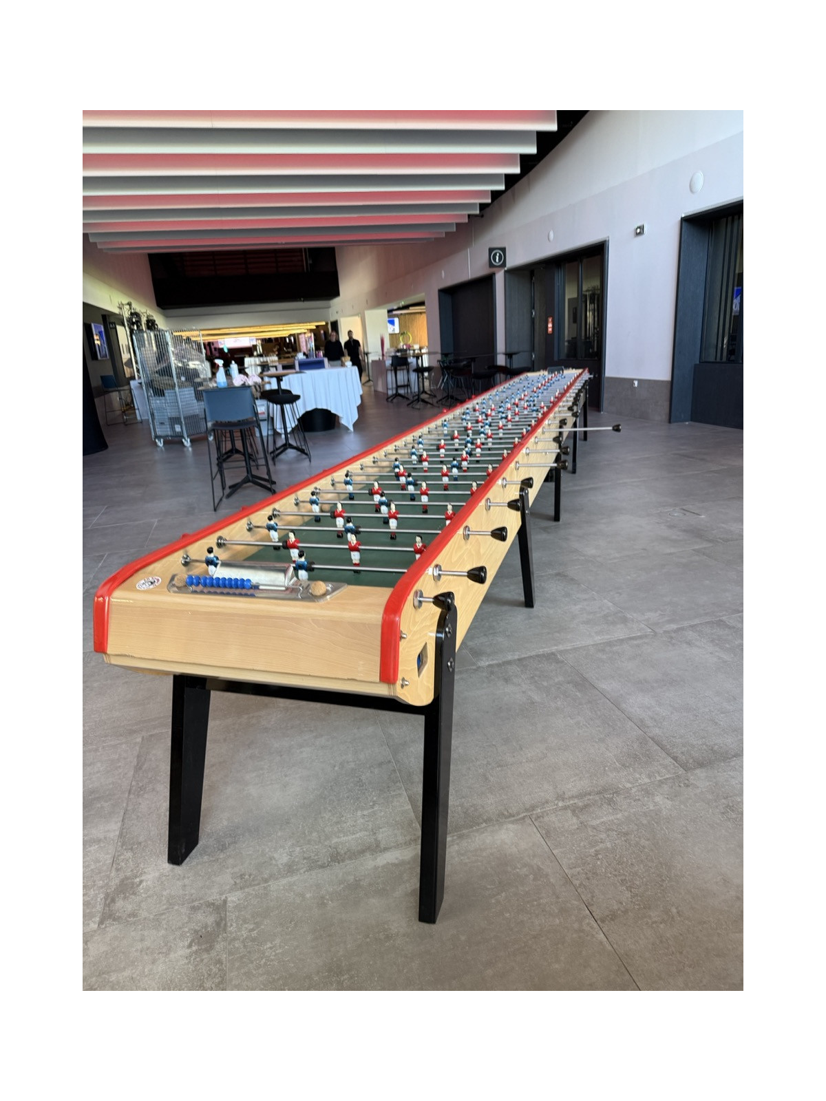 Avec son format XXL impressionnant et sa qualité de fabrication professionnelle, ce baby-foot devient instantanément l’attraction centrale de votre événement. Il est particulièrement adapté aux grandes entreprises, événements institutionnels, animations sportives et manifestations grand public.