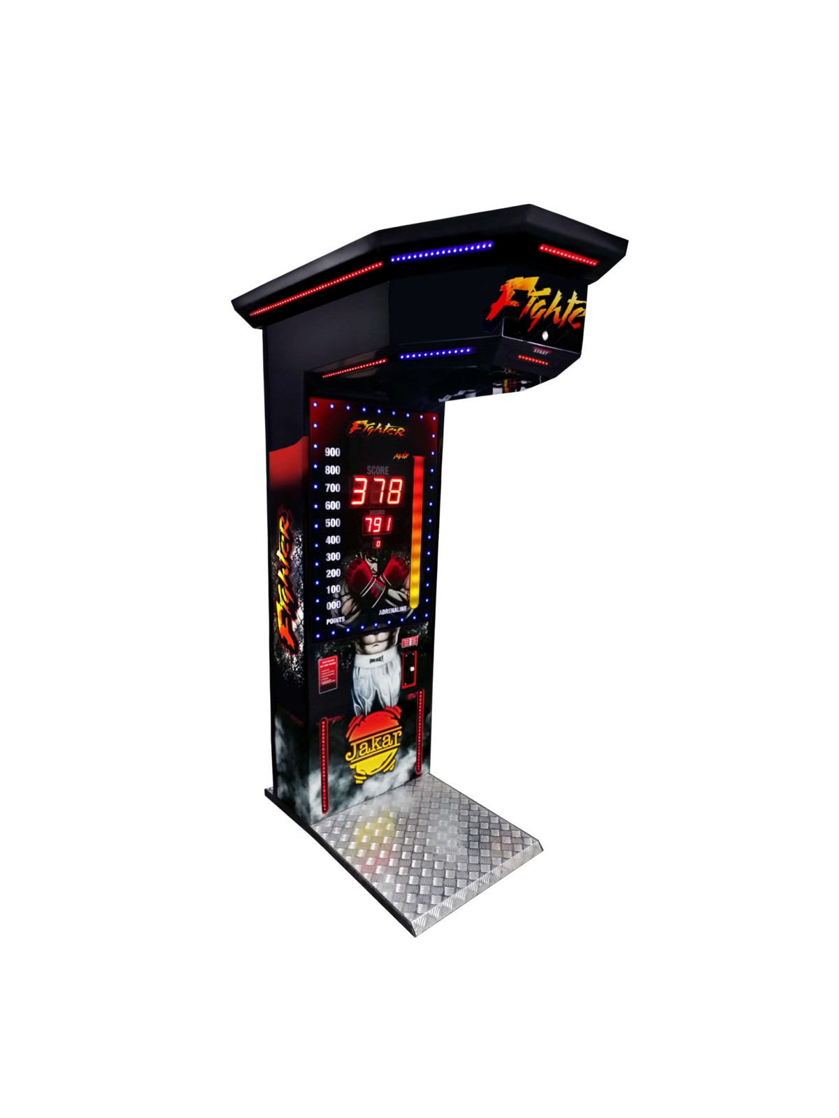 La machine à coup de poing est une animation de force et de précision qui suscite immédiatement l’intérêt. Le principe est simple : le participant frappe le capteur pour mesurer la puissance du coup, affichée instantanément grâce à un système électronique lumineux.