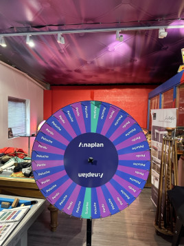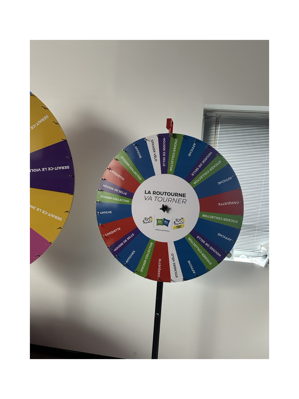 Optez pour la location d’une roue personnalisée de 90 cm à 36 segments à la journée, une animation interactive et sur mesure, idéale pour maximiser la visibilité de votre marque et dynamiser vos événements et opérations marketing.