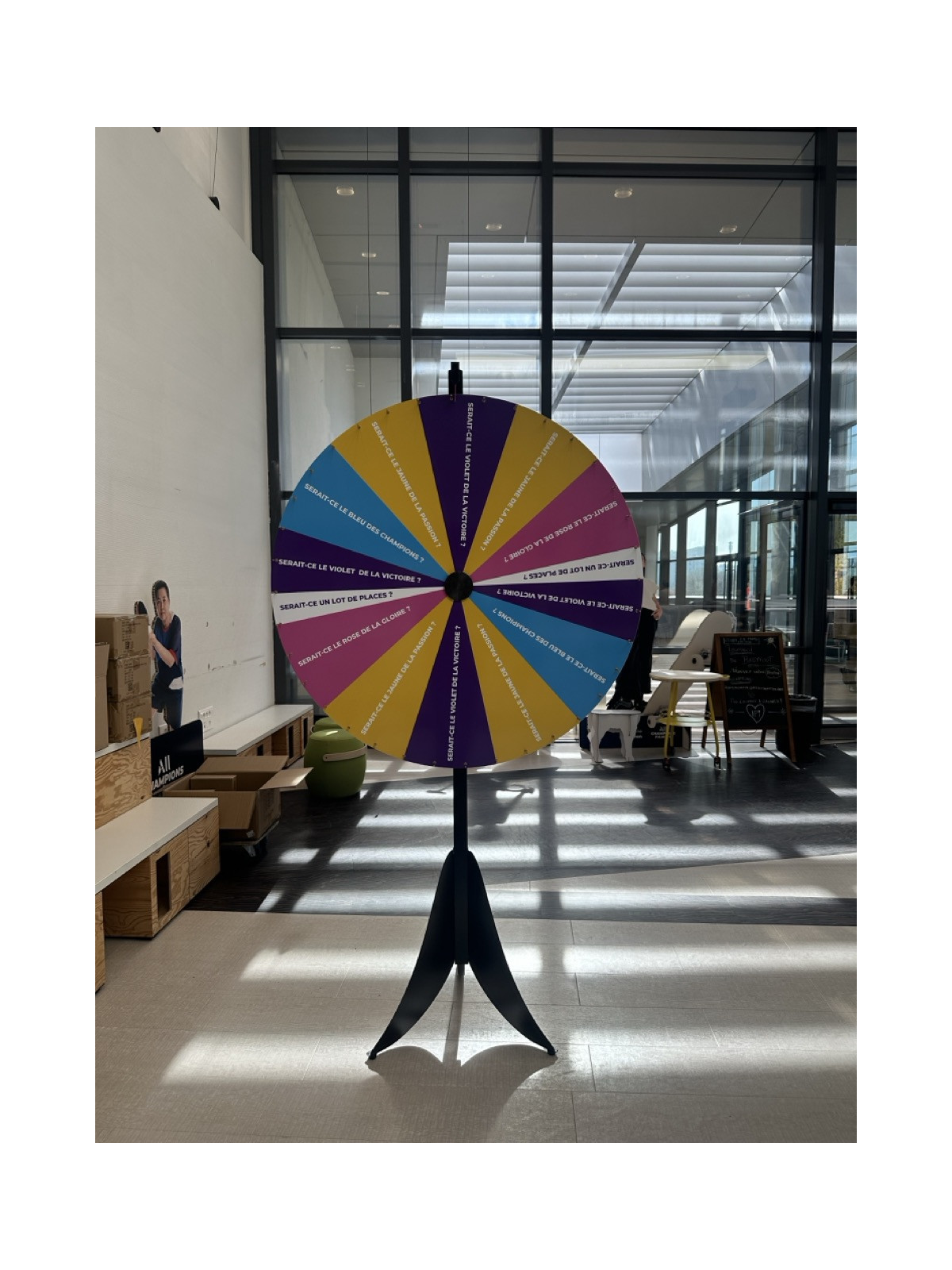 Optez pour la location d’une roue personnalisée de 127 cm à 36 segments à la journée, une animation XXL à très fort impact visuel, idéale pour capter l’attention et maximiser la visibilité de votre marque lors de vos événements et opérations marketing.